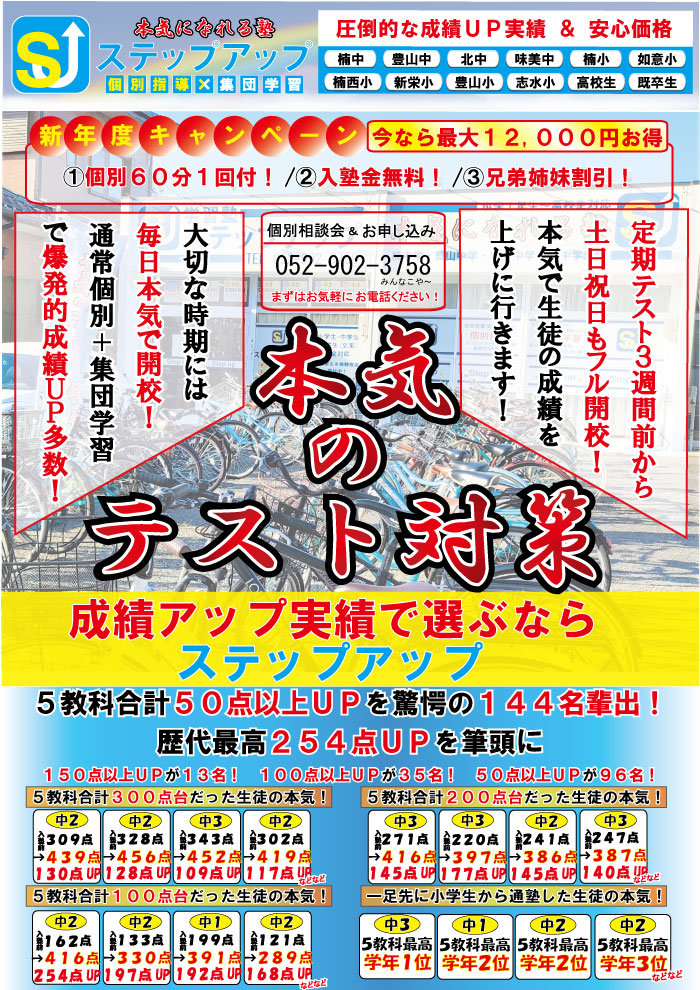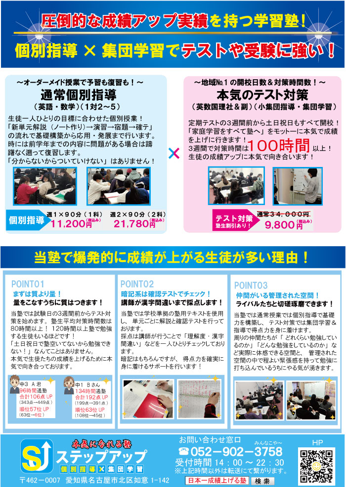 せっかく塾に通うのであれば、誰もが驚くほど点数を上げるために我々も全力かつ本気でサポートさせて頂きます。