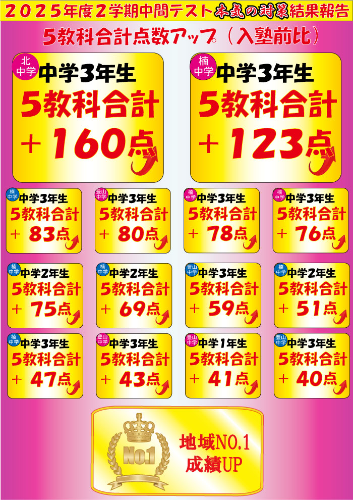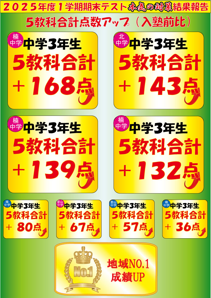 【楠校】1学期中間テスト結果報告!