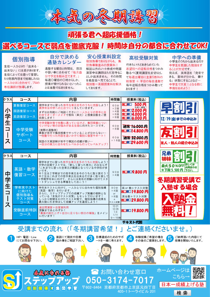 この冬休みに体験して、3学期の成績を上げよう!