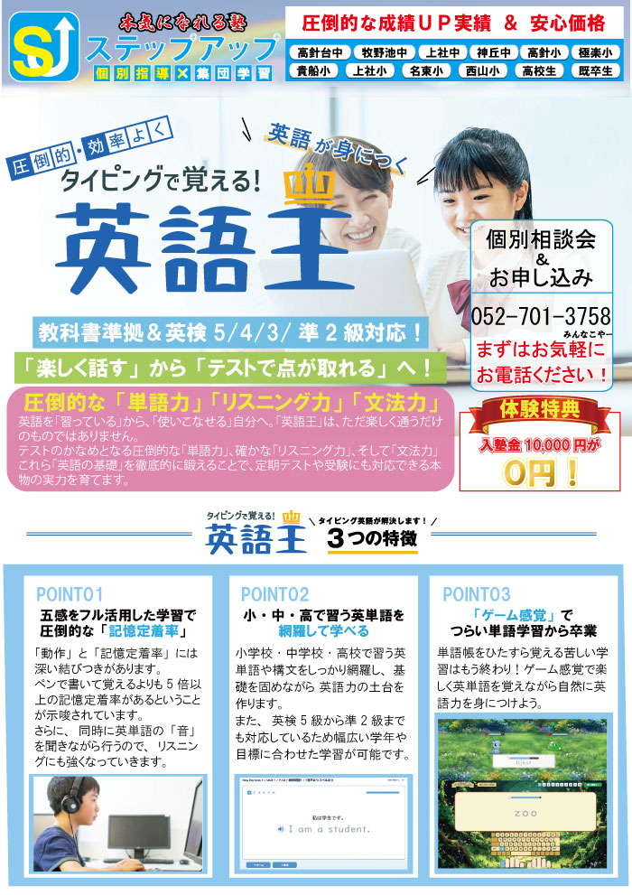 小学5年生で中学3年生レベルまでの英単語を覚えてしまっている生徒もいるくらいです。