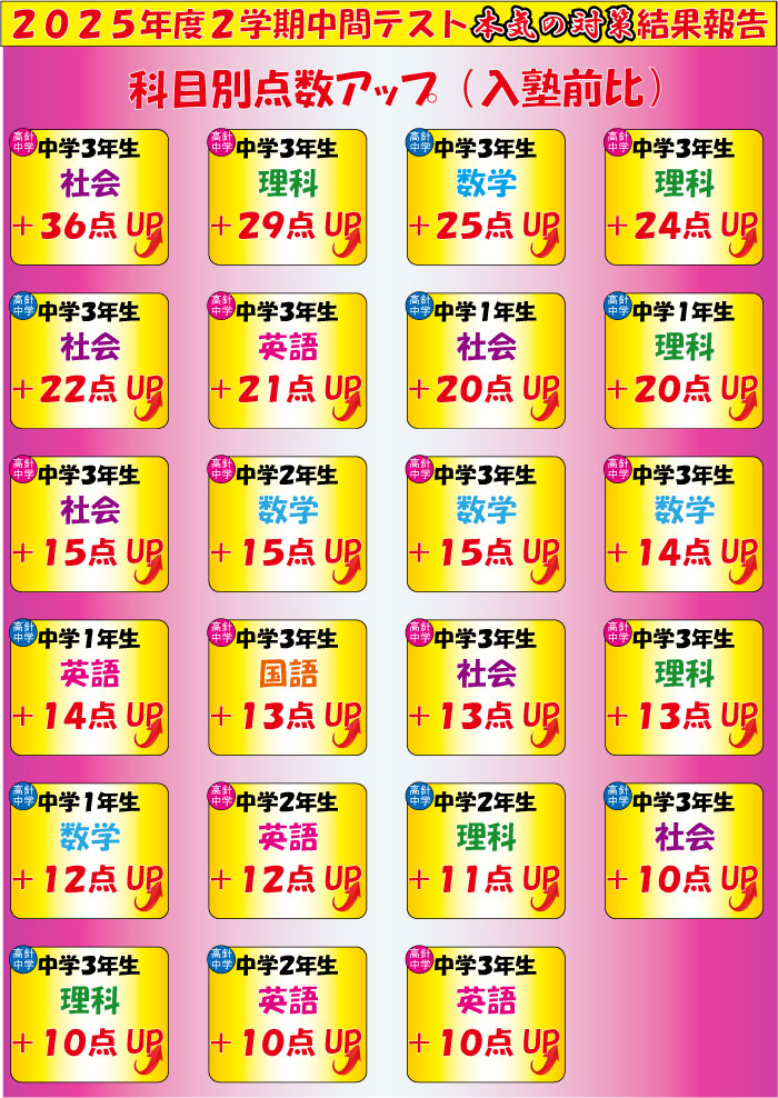 【高針校】中間テスト結果速報‼ 3桁UP⁉