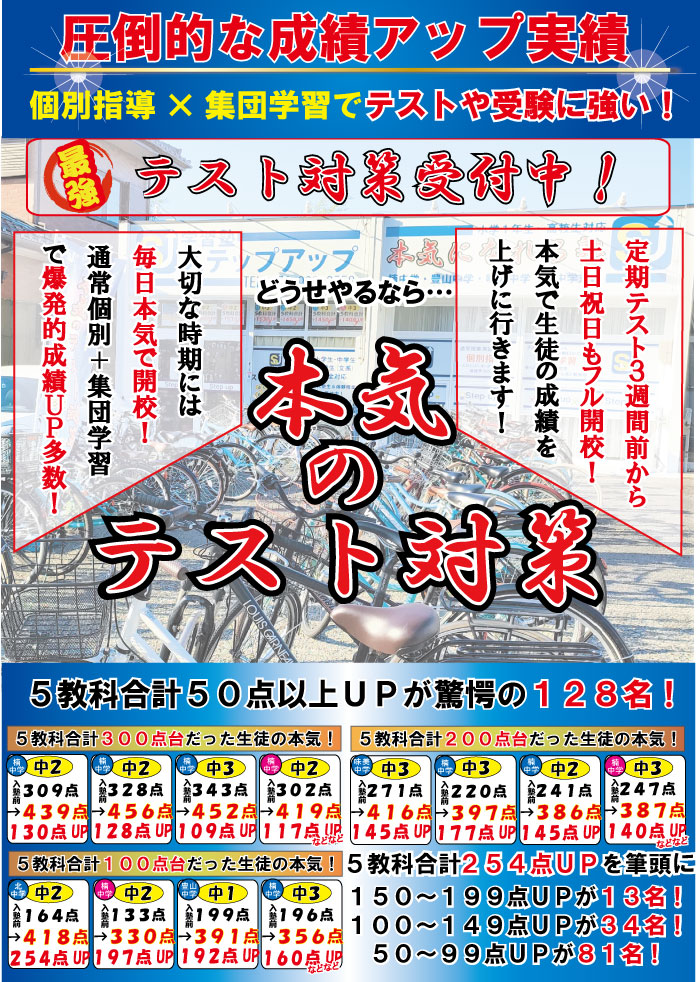 せっかく塾に通うのであれば、誰もが驚くほど点数を上げるために我々も全力かつ本気でサポートさせて頂きます。