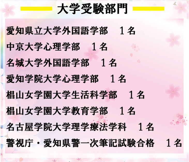 | 名古屋西 | 3名 | 至学館 | 52名 |