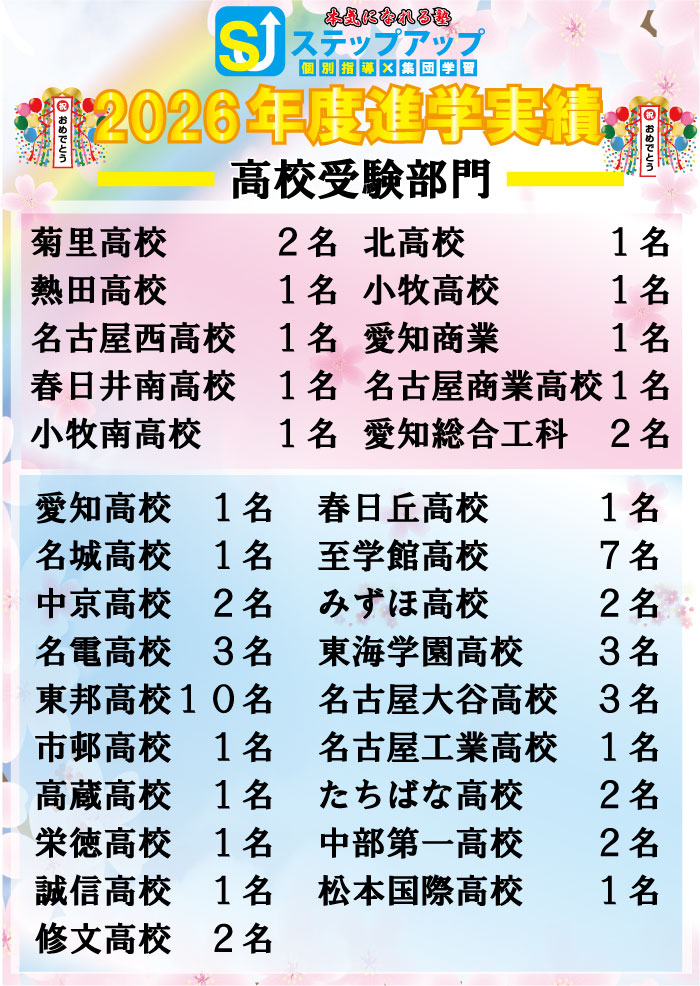| 春日井高校高校 | → | 名古屋市立大学 |