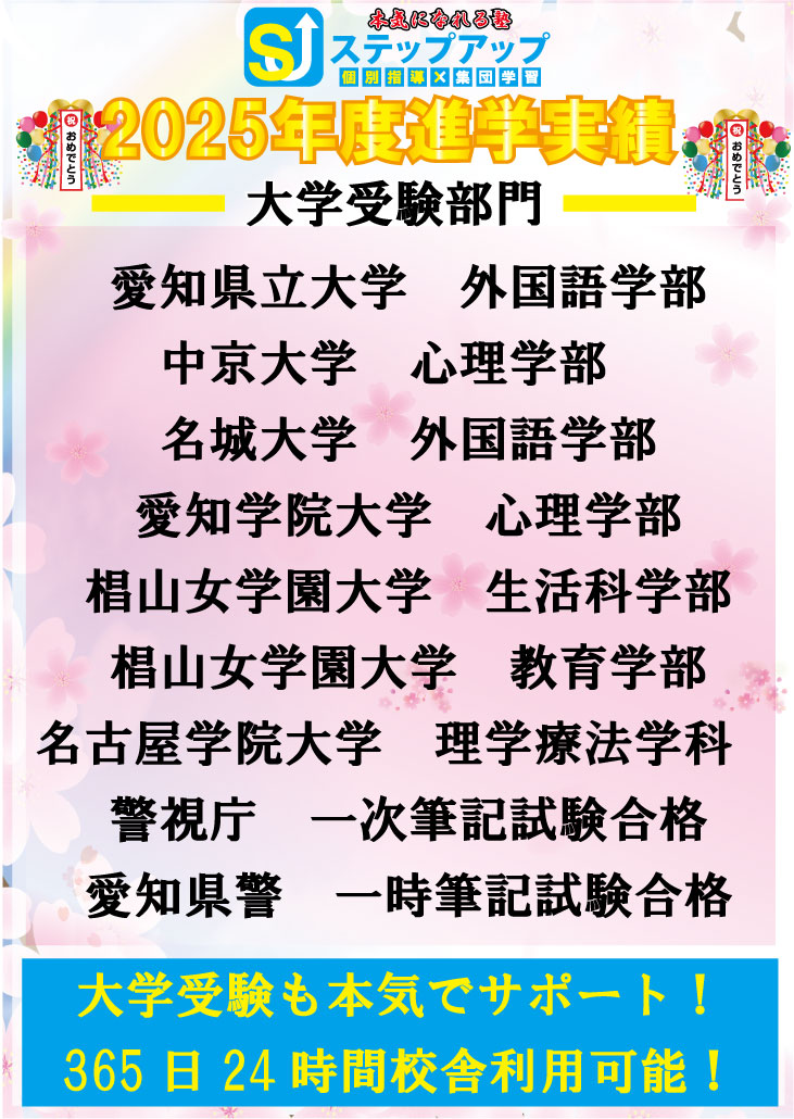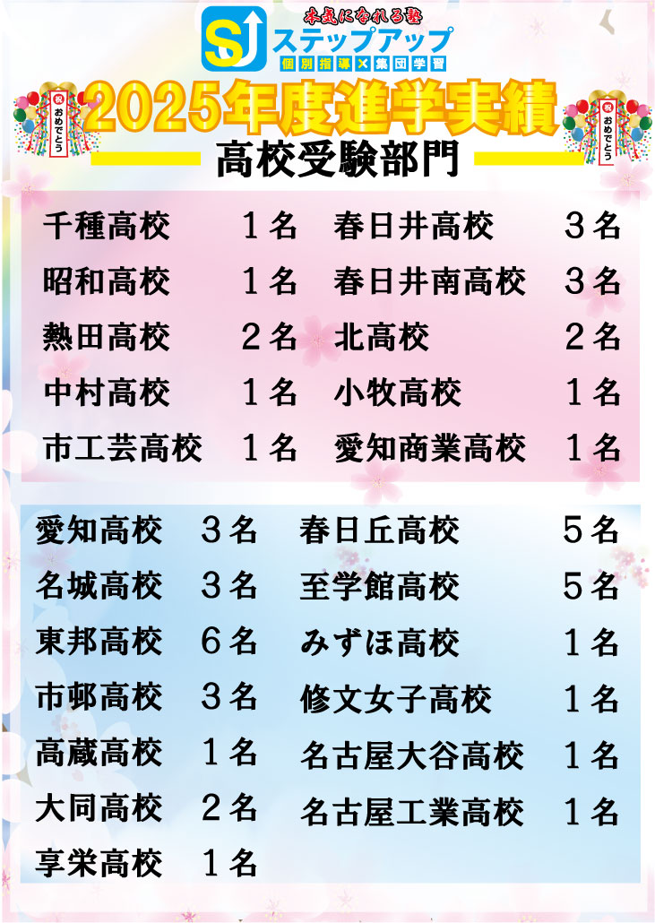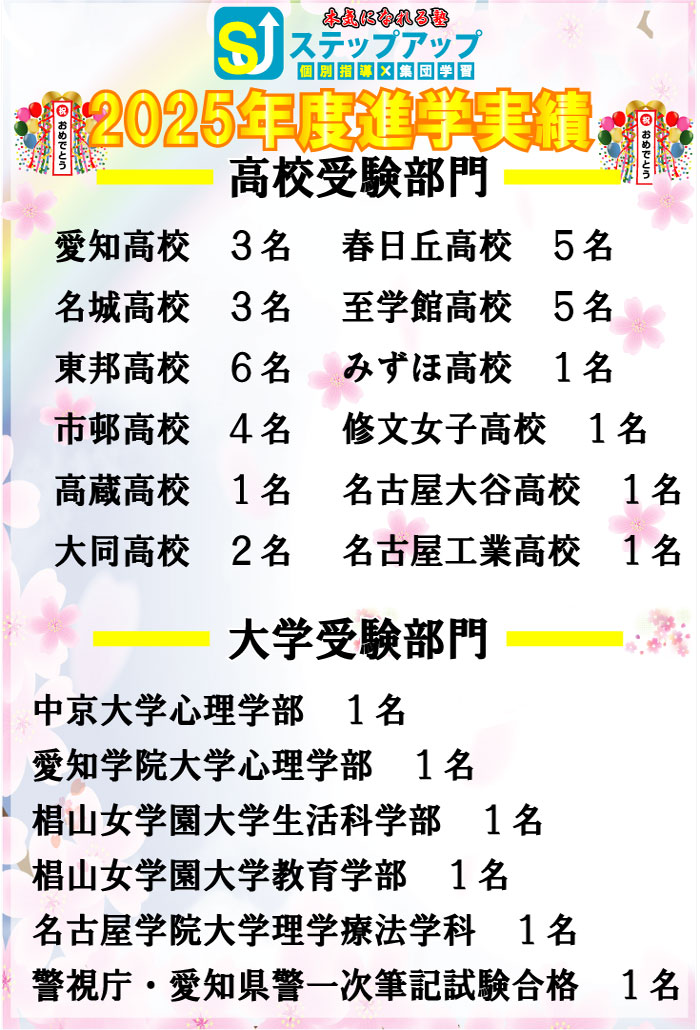 ステップアップ楠校の2025年度入試が全て終了しましたので、このブログでその結果の報告をさせて頂きます![]()