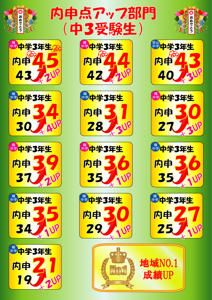 【楠校】中3受験生の内申点アップ状況(^O^)