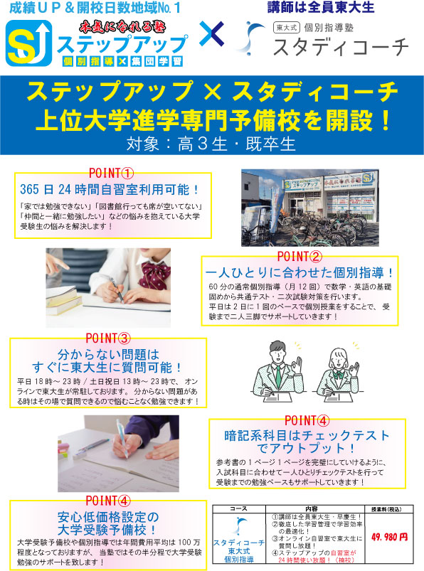 【楠校】上位大学進学専門予備校コースを始めました!