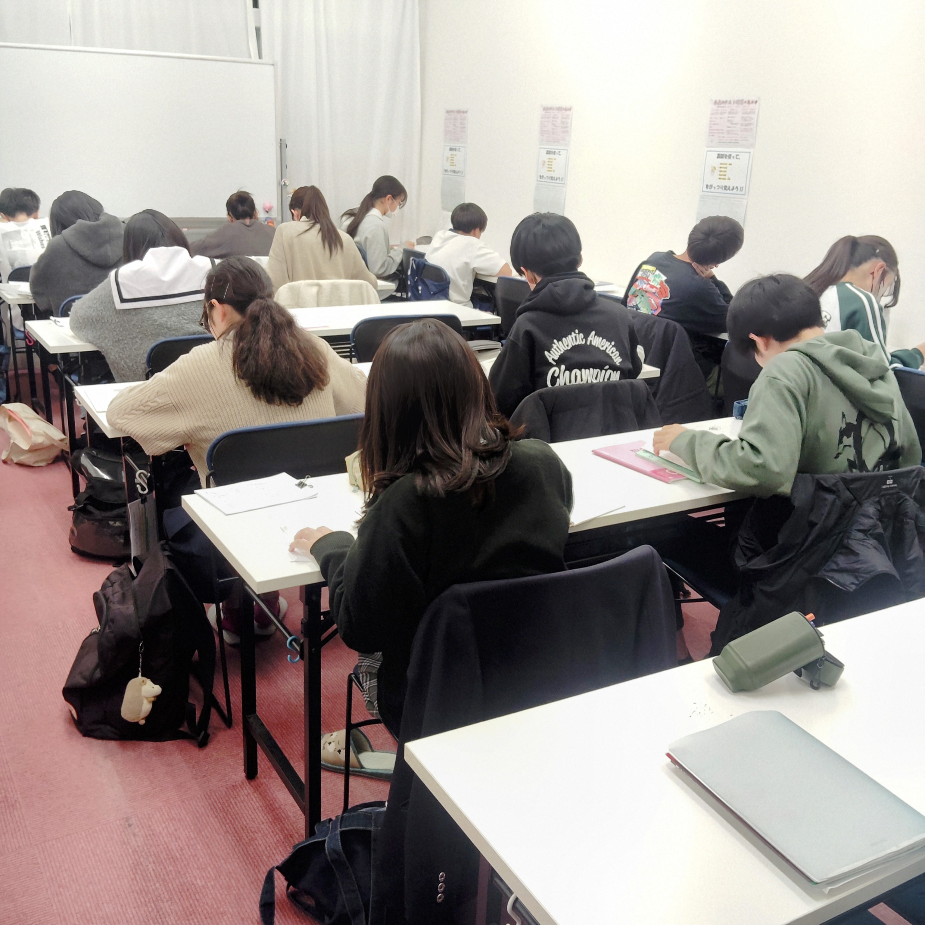 冬休みとなり、中3生は毎日14時から22時まで中学生の残りの理科(天体)・社会(公民)を年内にマスターするべく怒涛のように、14時から解説授業の後、確認テストを行っております![]()