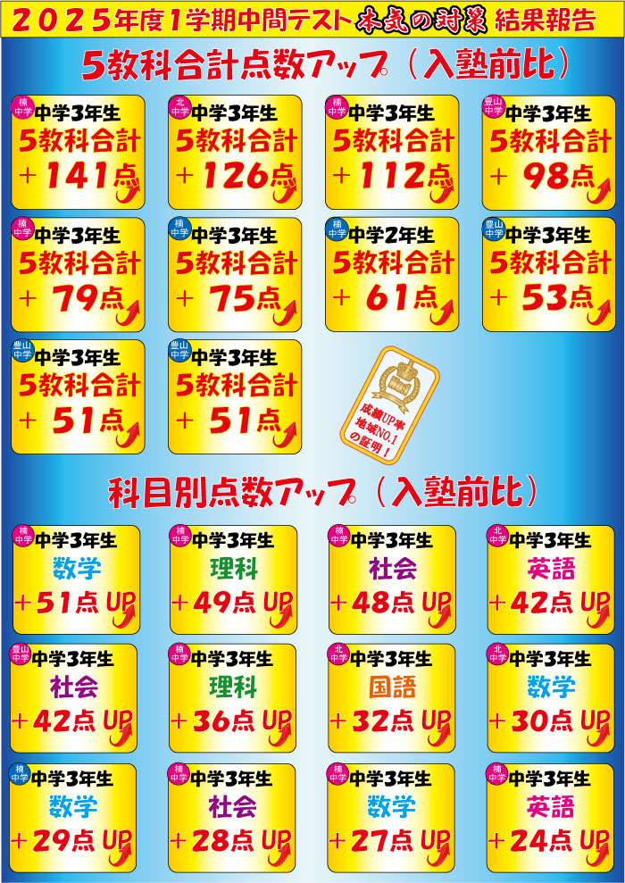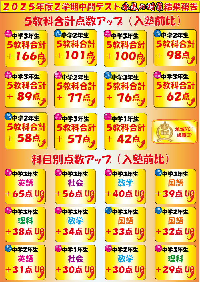 今回のブログでは今年度の驚異的な成績アップ者(中3受験生VER.)をご紹介いたします![]()