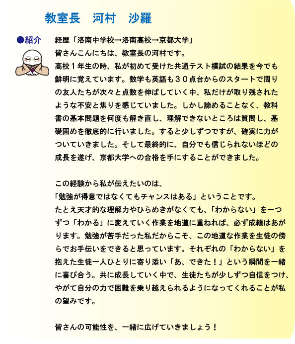 多くの生徒たちの成績アップや志望校合格などのサポートをさせて頂いております。