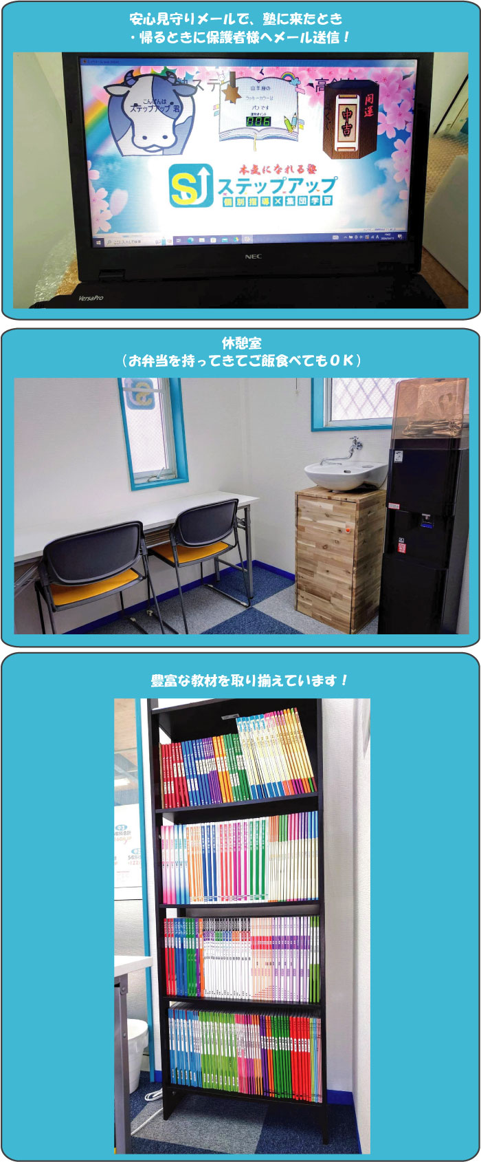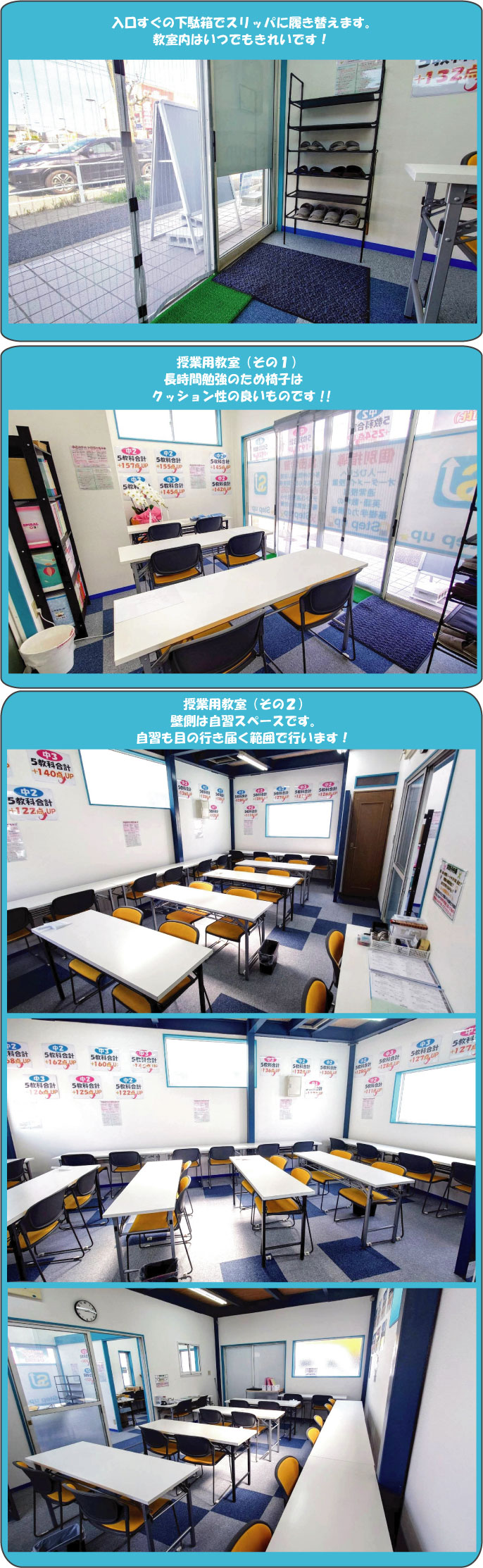 生徒が頑張るとき、または大切なときに一番開校することで、地域№1の面倒見&地域№1成績アップ実績を目指しております。