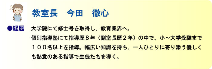 講師はアルバイトではなく、教室長が自ら責任もって指導いたします。