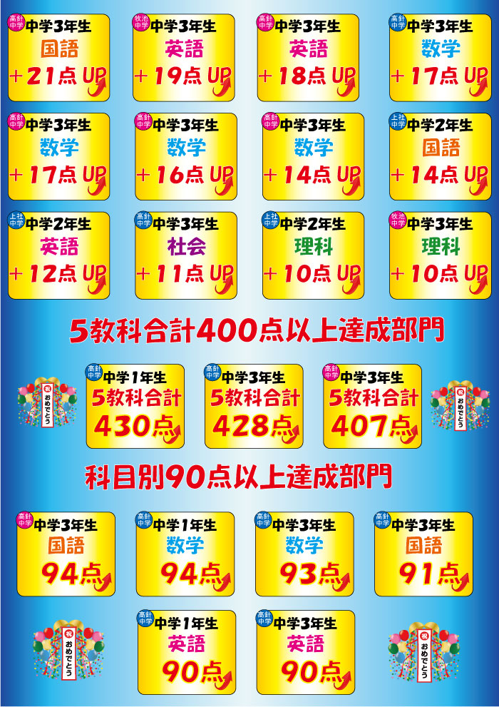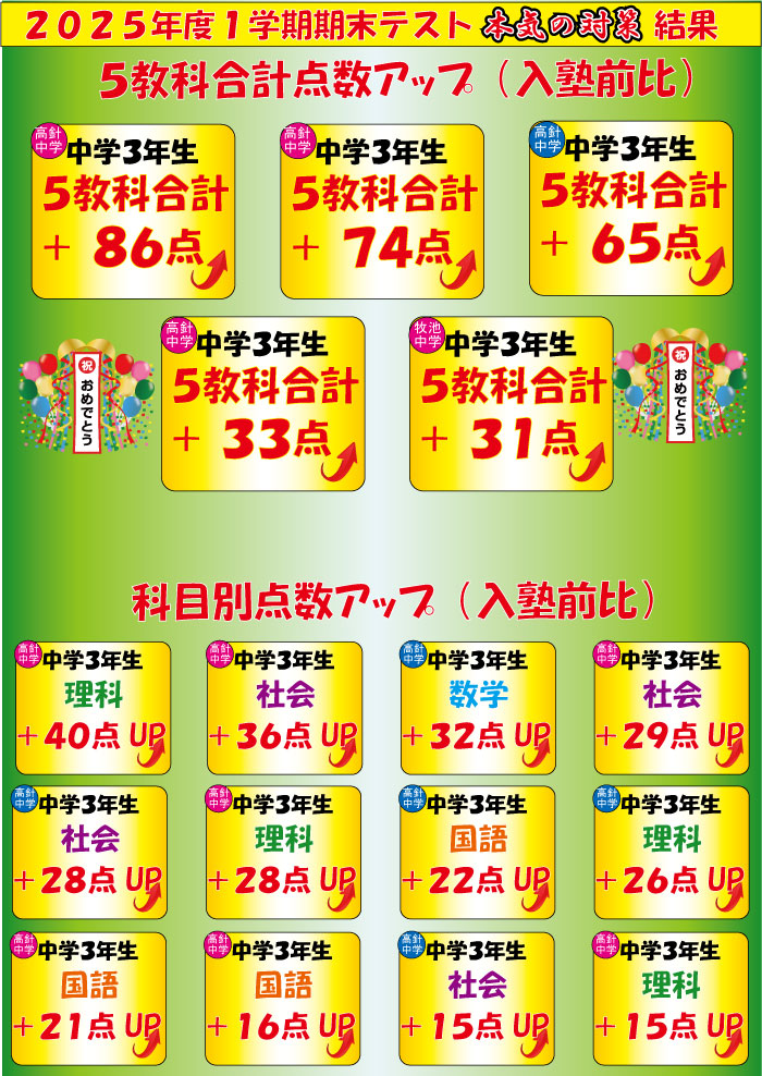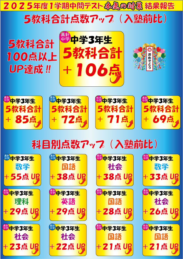 【高針校】中間テスト結果速報‼ 3桁UP⁉