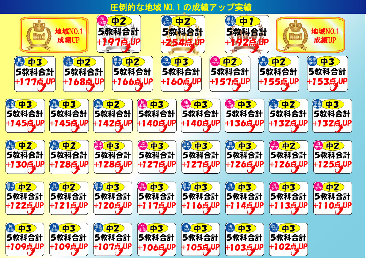 当塾の大幅な点数アップ実績は「通常個別授業」を最大限に活かすことのできる「本気のテスト対策」から続出しています。